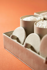 Kit Higiene Landucci: um conjunto completo em couro legítimo para organizar fraldas, algodão, cotonetes, cremes e acessórios do bebê, mantendo tudo visível, protegido e sempre à mão.